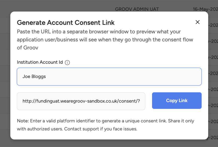 You and your team will be able to see all the Account Links generated across your platform as follows under Portfolio - Account Links leftmost menu bar section of the Groov Portal dashboard: